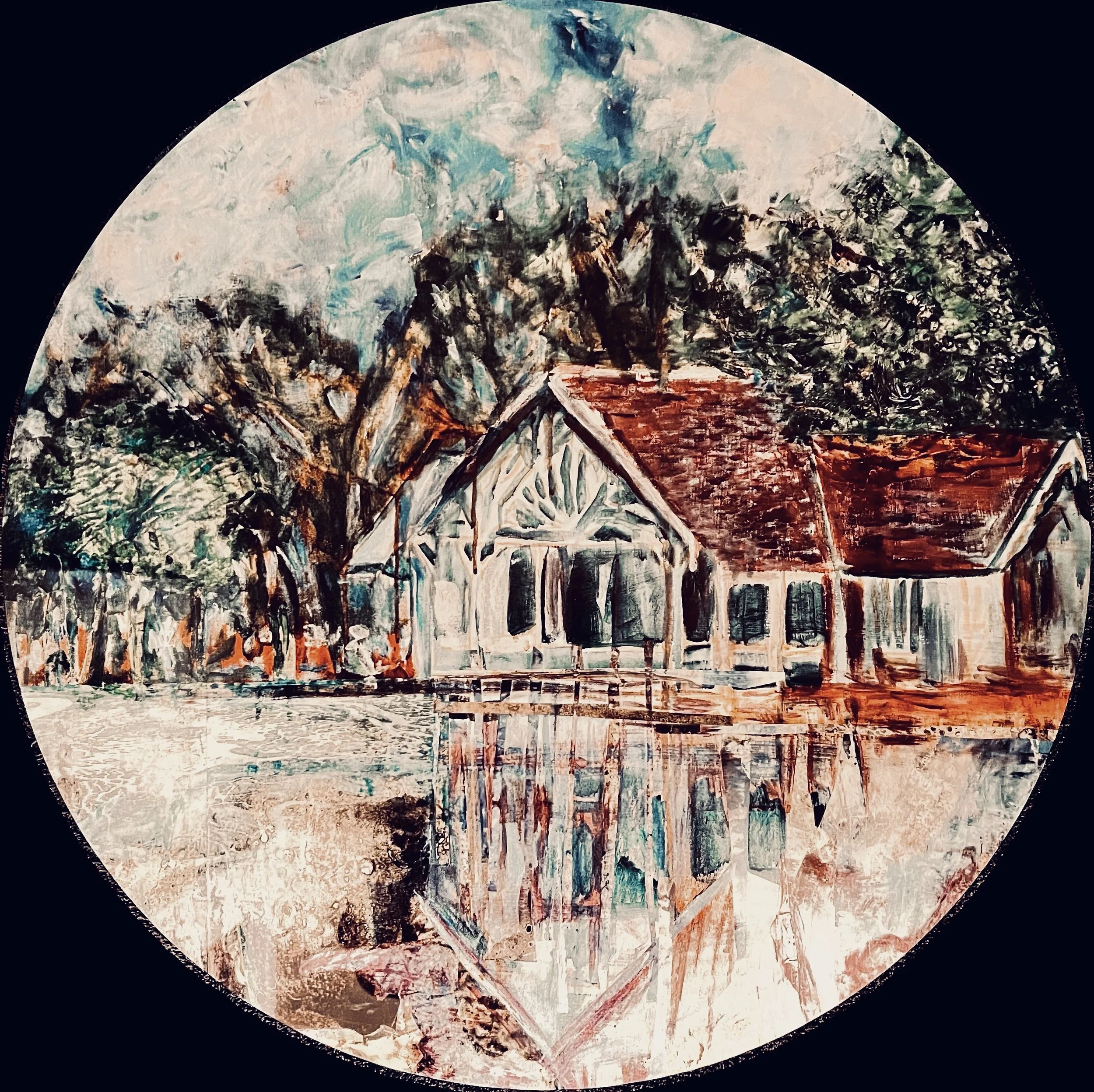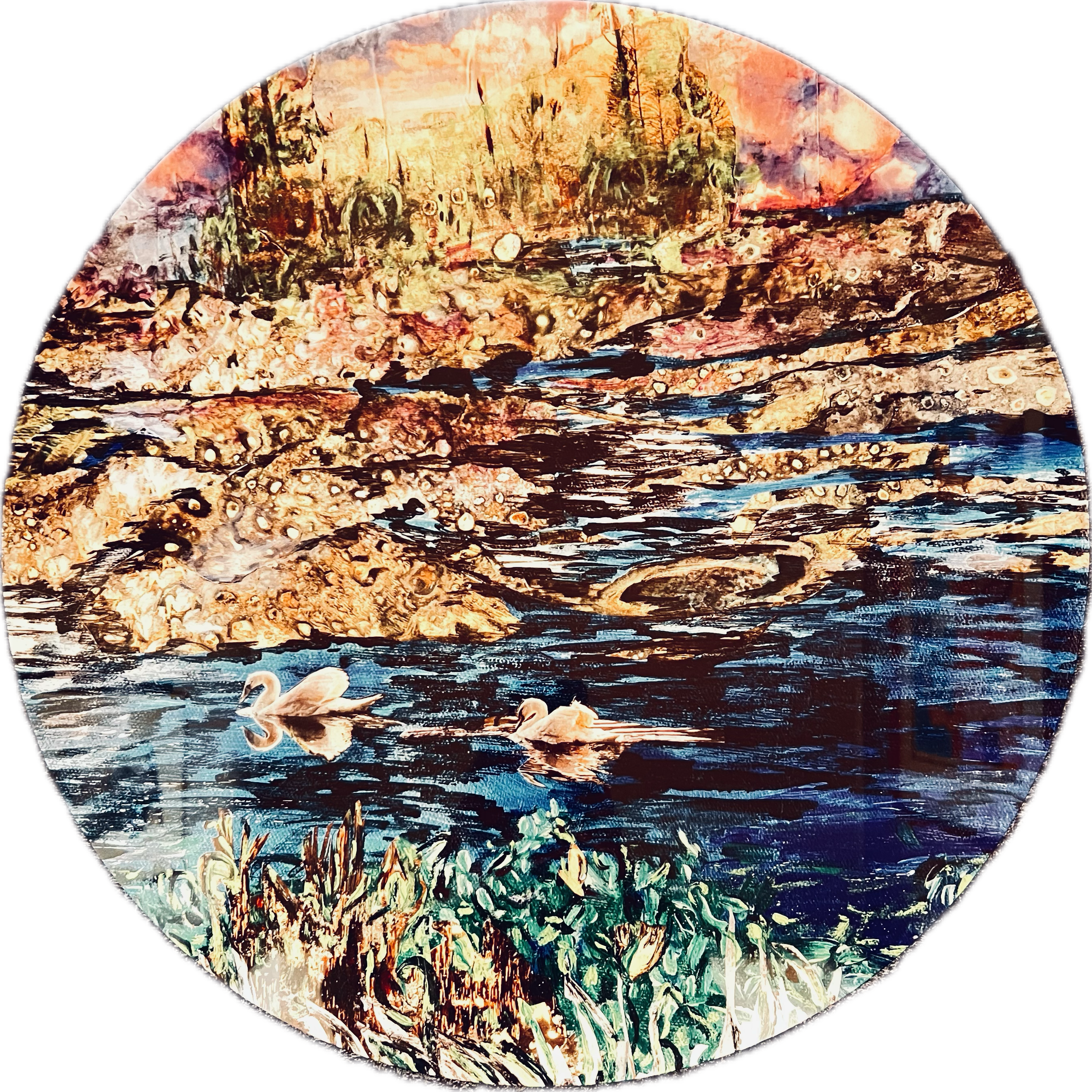 Sale $350 / Dye Sublimation / ChromoLuxe White Aluminum Glow / 20 inches / Original collage in Tondo Section