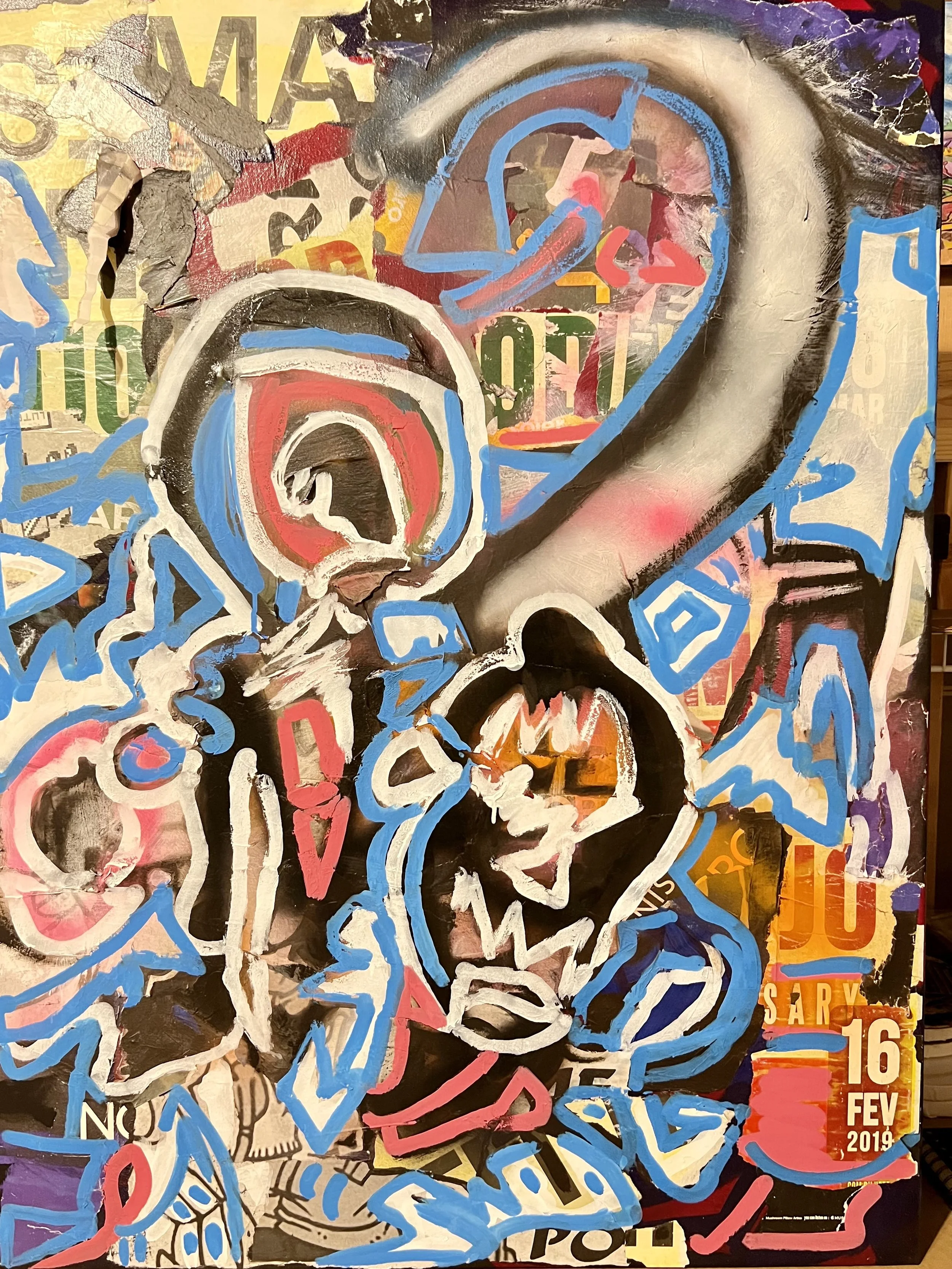 Since 2020, I've embarked on a creative journey, crafting expansive mixed media artworks that draw inspiration from my travels and childhood. These pieces often incorporate found street materials and cherished ephemera, even repurposing old windows as substrates. Their diverse subject matter spans cosmic marvels, childhood reminiscences, and themes as weighty as communism, all brought to life on canvases ranging from 30" to 60".
